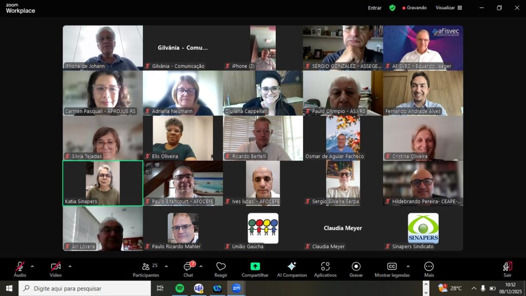 Na manhã desta segunda-feira (24), a União Gaúcha em Defesa da Previdência Social e Pública elegeu sua nova coordenação para o biênio 2026/2027, em reunião realizada na sede da AMP/RS. O presidente Fernando Andrade Alves apresentou o relatório de sua gestão, destacando avanços significativos que reforçaram a presença institucional da entidade no debate público e